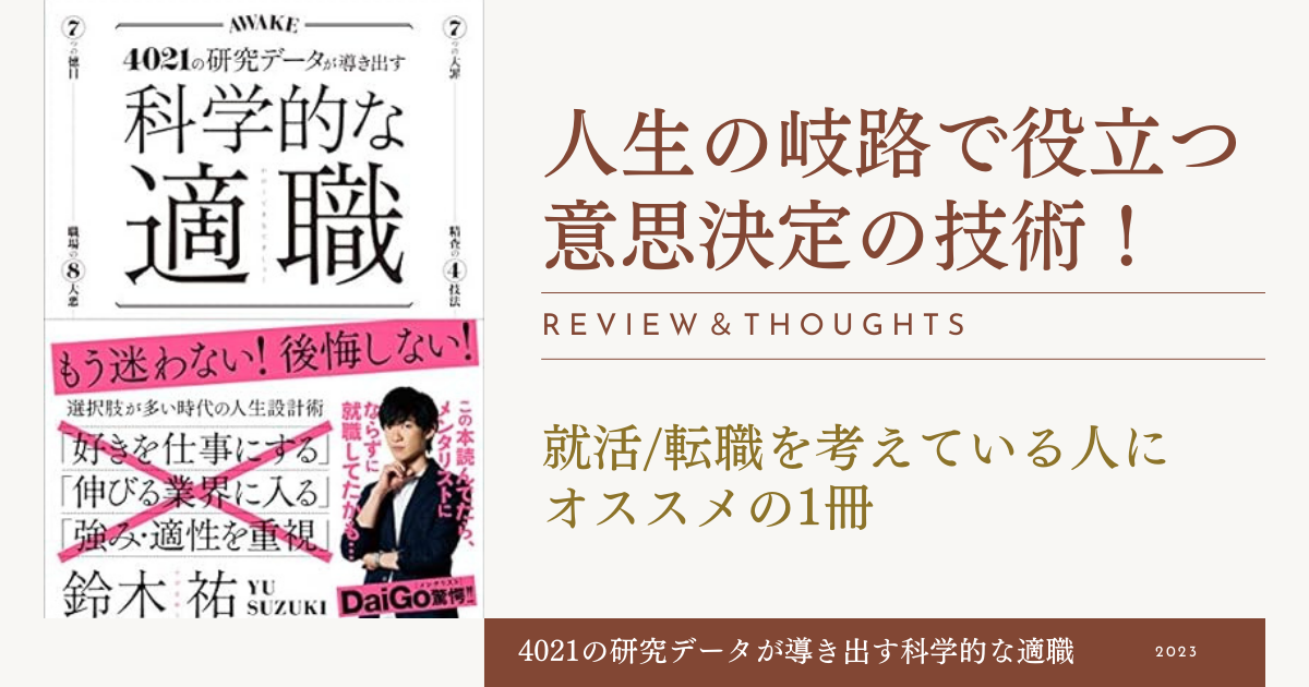 性格分析する本や就活/転職のハウツー本ではなく、幸福を最大化する職業選択のための意思決定の仕方を教えてくれる内容になっています。
