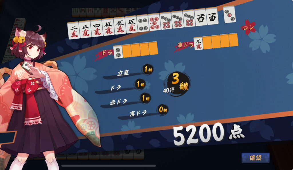 点数に上限が無く、半荘まで打てるので、しっかりと打ちやすい印象でした。
